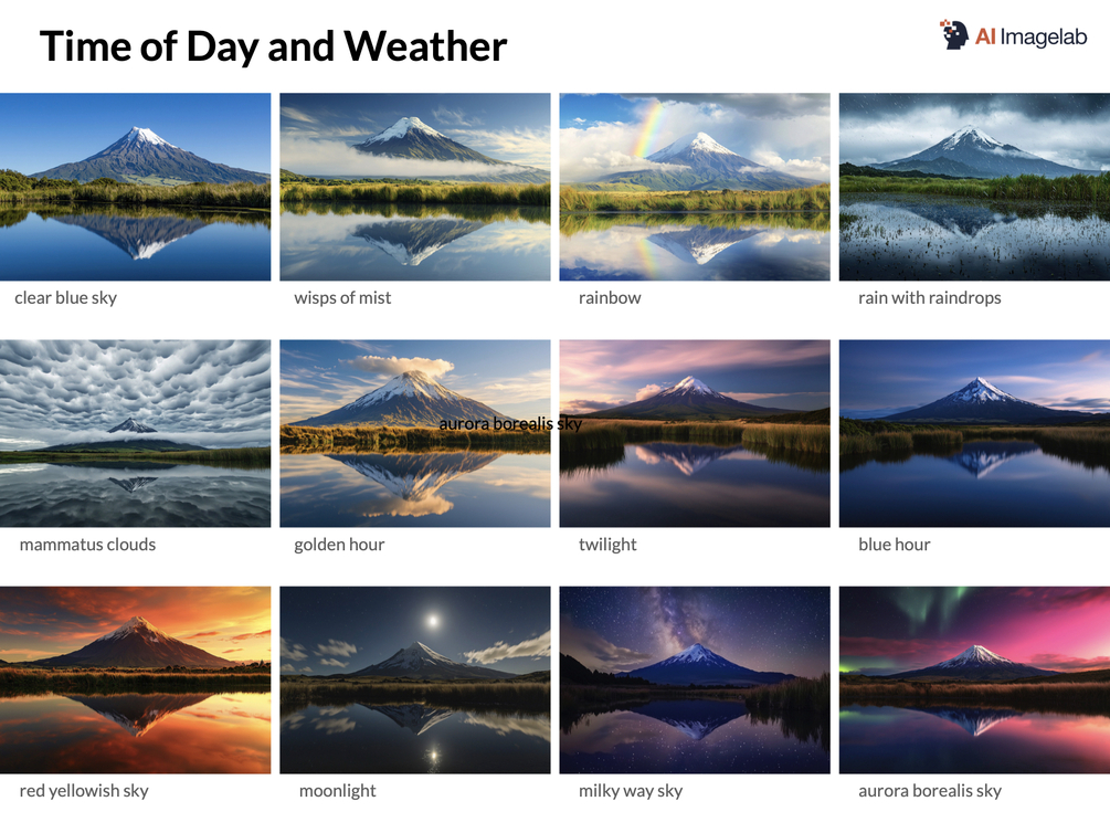 Part of the eBook consists of structured lists with prompts for all aspects related to photorealistic images.
